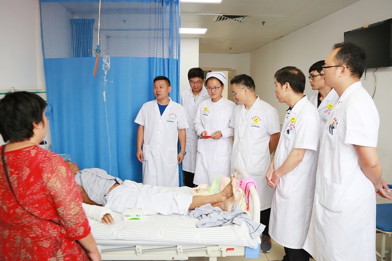 熱心的圍觀群眾立即撥打了泉河醫院的免費出車接診電話,泉河醫院急診科火速出診,將孫某接回醫院后,開啟生命綠色通道,開通欠費,急行各項檢查。經檢查診斷,孫某右臂多處多發開放性、粉碎性骨折,閉合性顱腦損傷,面顱多發骨折,胸、腹部閉合傷,肺挫傷,肝挫傷,多發肋骨骨折,腰椎骨折及全身軟組織挫傷。經過泉河醫院多學科精誠協作,歷經4次手術治療,孫某的生命體征已基本平穩,逐漸恢復到正常生活。