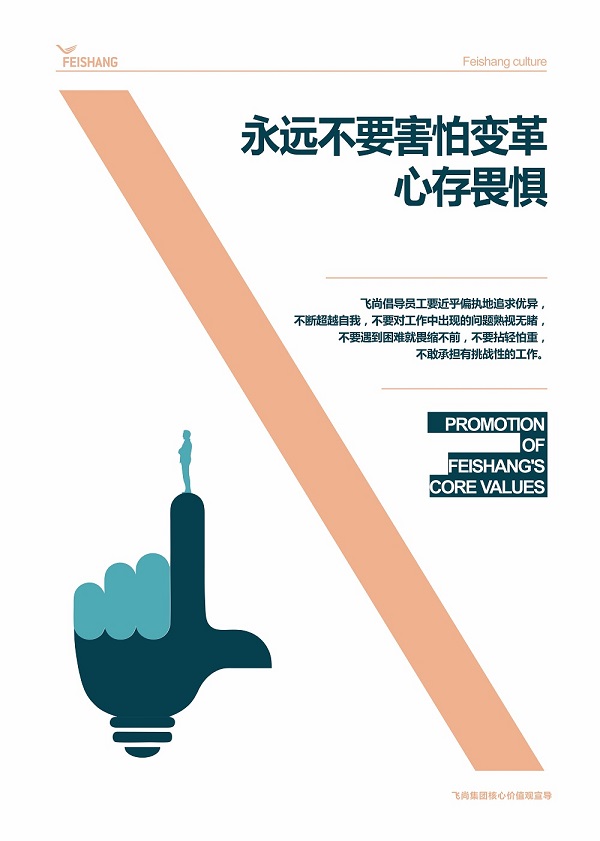 在飛尚集團企業文化體系中,如果說使命宗旨、企業愿景是企業戰略層面的事,意境太過高遠,那么核心價值觀則與每一個人息息相關,因為它直接關系到我們的一言、一行,體現為我們做人、做事的方式。尤其是核心價值觀行為指引,更為我們提供了清晰的標準、規范、底線,它幫助我們判斷在公司應該支持什么、贊賞什么、反對什么、批判什么。