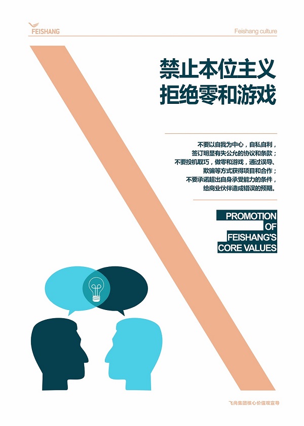 上期編發的飛尚集團核心價值觀行為指引禁行12條關于“誠信”和“責任”,本期內容關于“超越”和“增值、共贏”。