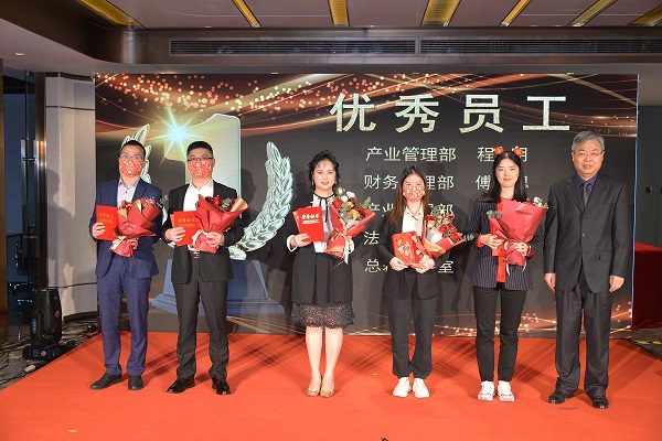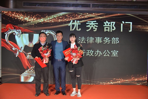 法律事務部、行政事務辦公室榮獲2021年度集團總部優秀部門,程明、傅文思、張麗佳、賀錦錕、申優榮獲2021年度集團總部優秀員工,集團領導分別為獲獎的團隊和個人頒獎。