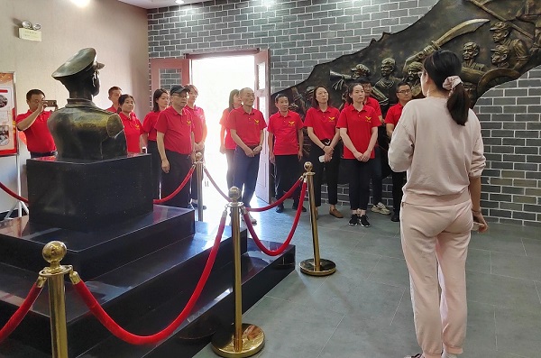 官陡門是日軍對付新四軍而采取“梅花樁戰術”的據點,1939年粟裕通過“奇襲”戰術,僅用了8分鐘,全殲日偽軍300余人,繳獲戰利品無數。在官陡門大捷紀念館,大家認真聽取講解員解說,觀看珍貴的圖文實物,從中感受到戰斗的艱辛,堅定了共產主義必勝的信念。